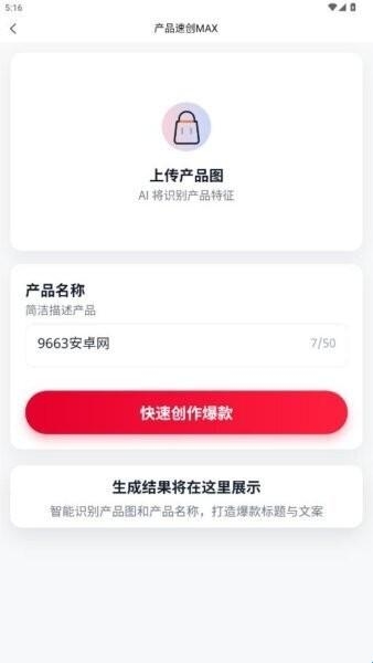 选择上传产品图功能,导入相关产品图片,系统会自动识别图像特征,为后续文案生成奠定基础。