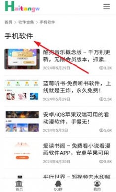 1,打开海棠网,在最右上方点击菜单栏就可以看到分类了