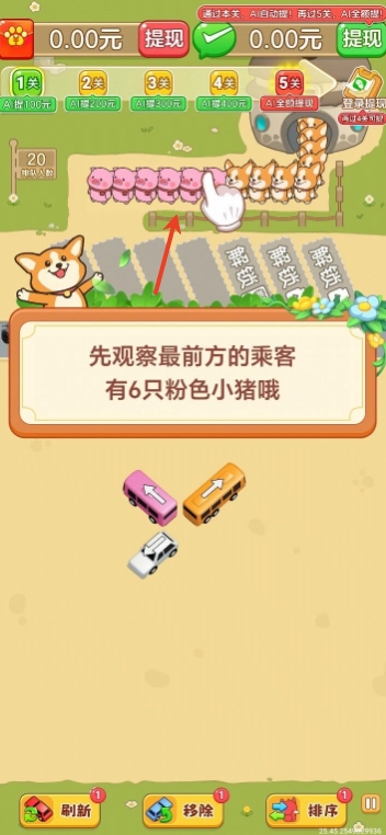 3、然后点击最下方对应的车辆来载走小猪
