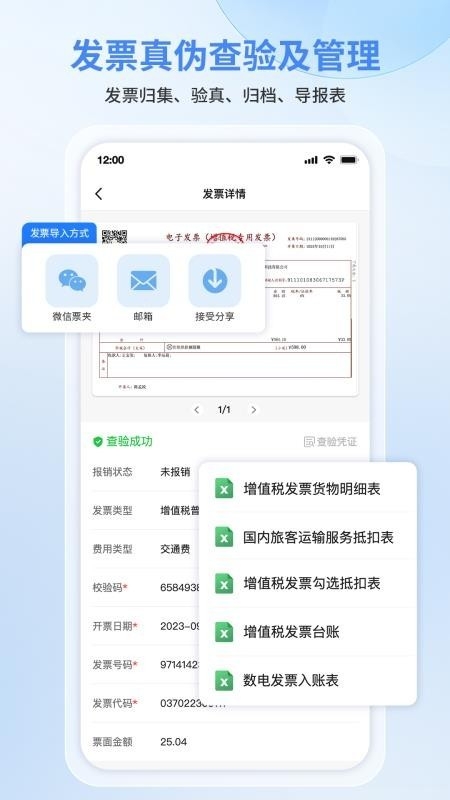 3.发票扫描识别,能自动提取发票代码、金额、开票时间等信息。