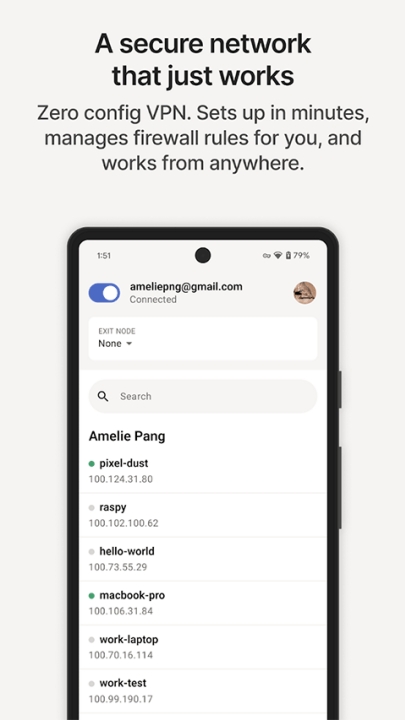 Tailscale是一款实用的内网穿透软件,软件内用户可以自由连接各种远程设备,相关用户在这里可以根据自己的想法组成安全私有网络,可以让更多的用户们进行链接啦,超多的局域网软件。